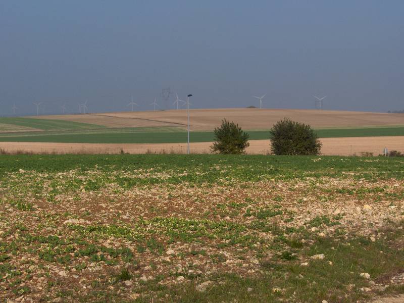 Document 3 : Terre calcaire et champ d'éoliennes aux abords immédiats du laboratoire de recherche souterrain de Meuse/Haute-Marne à Bure